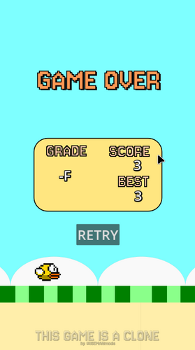 THIS GAME IS A CLONE I MADE FOR FUN. NOT THE REAL FLAPPY BIRD